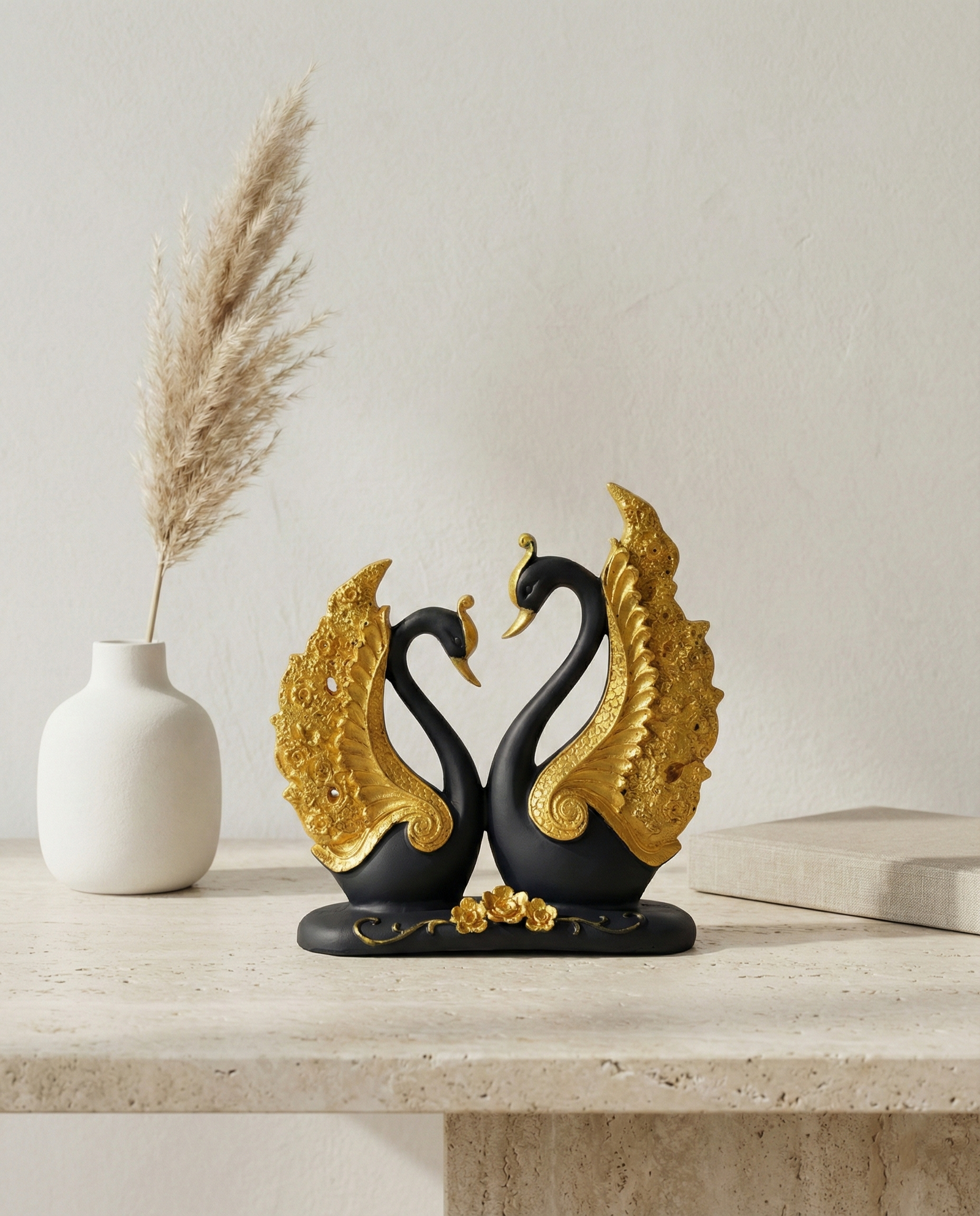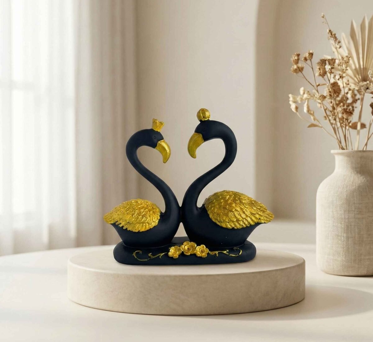 TCG 7.5″ Lovely Blue Golden Couple Swan Statue