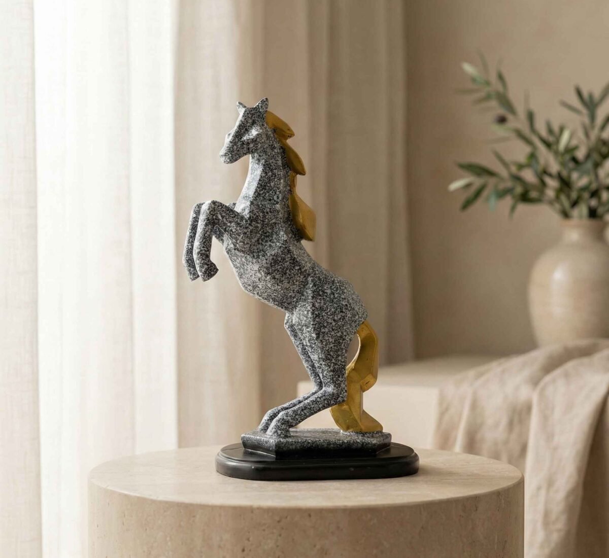 TCG 11″ Golden Marble Horse Statue