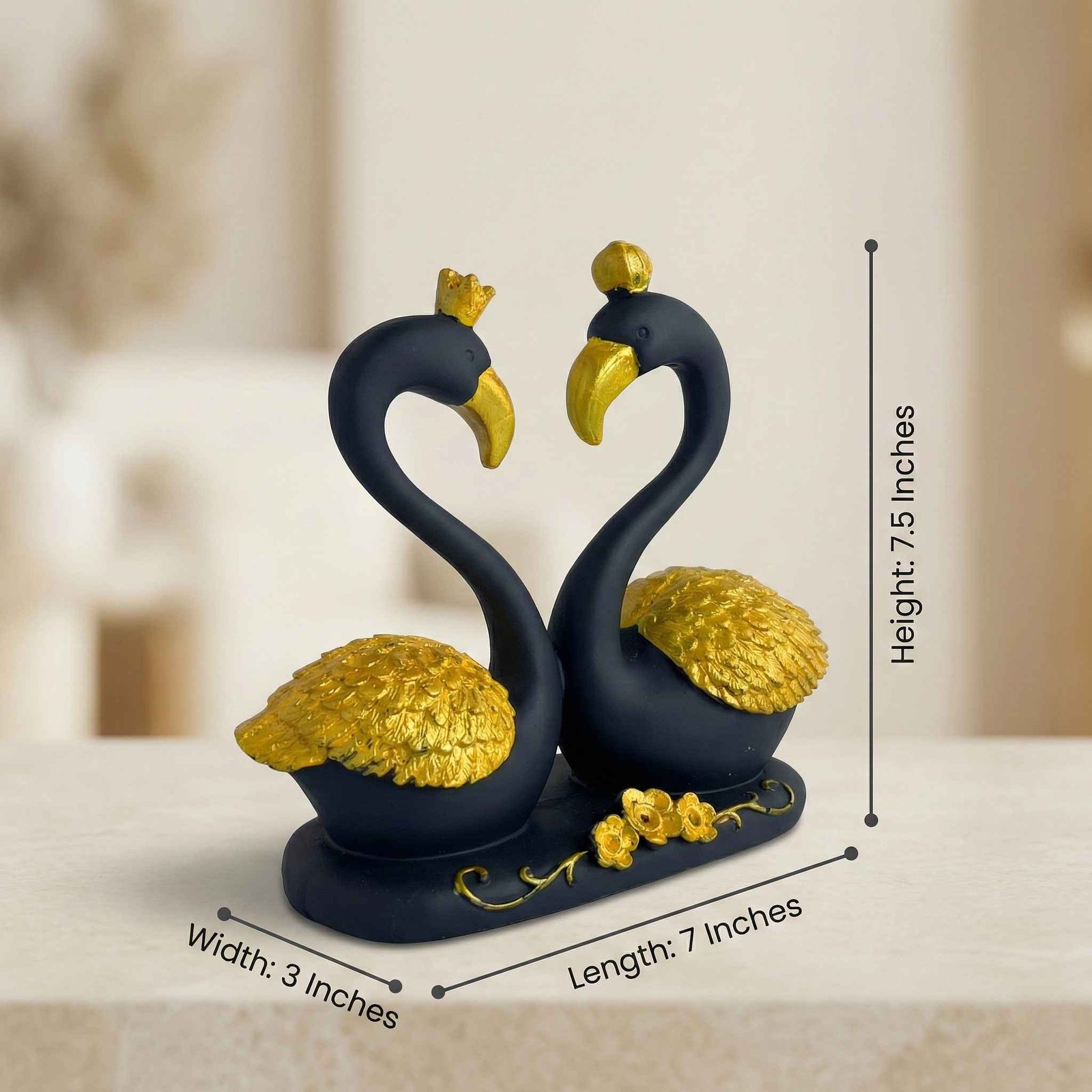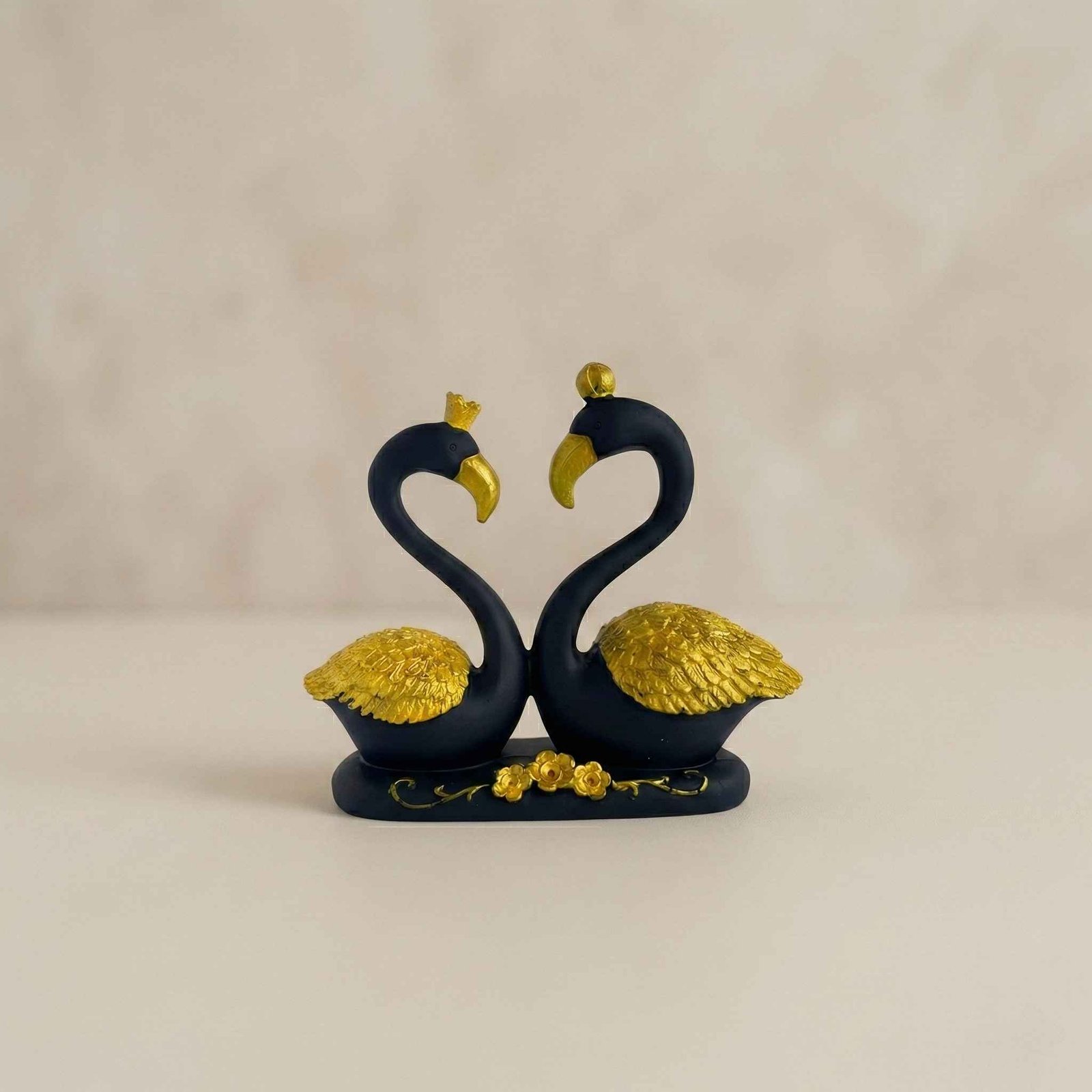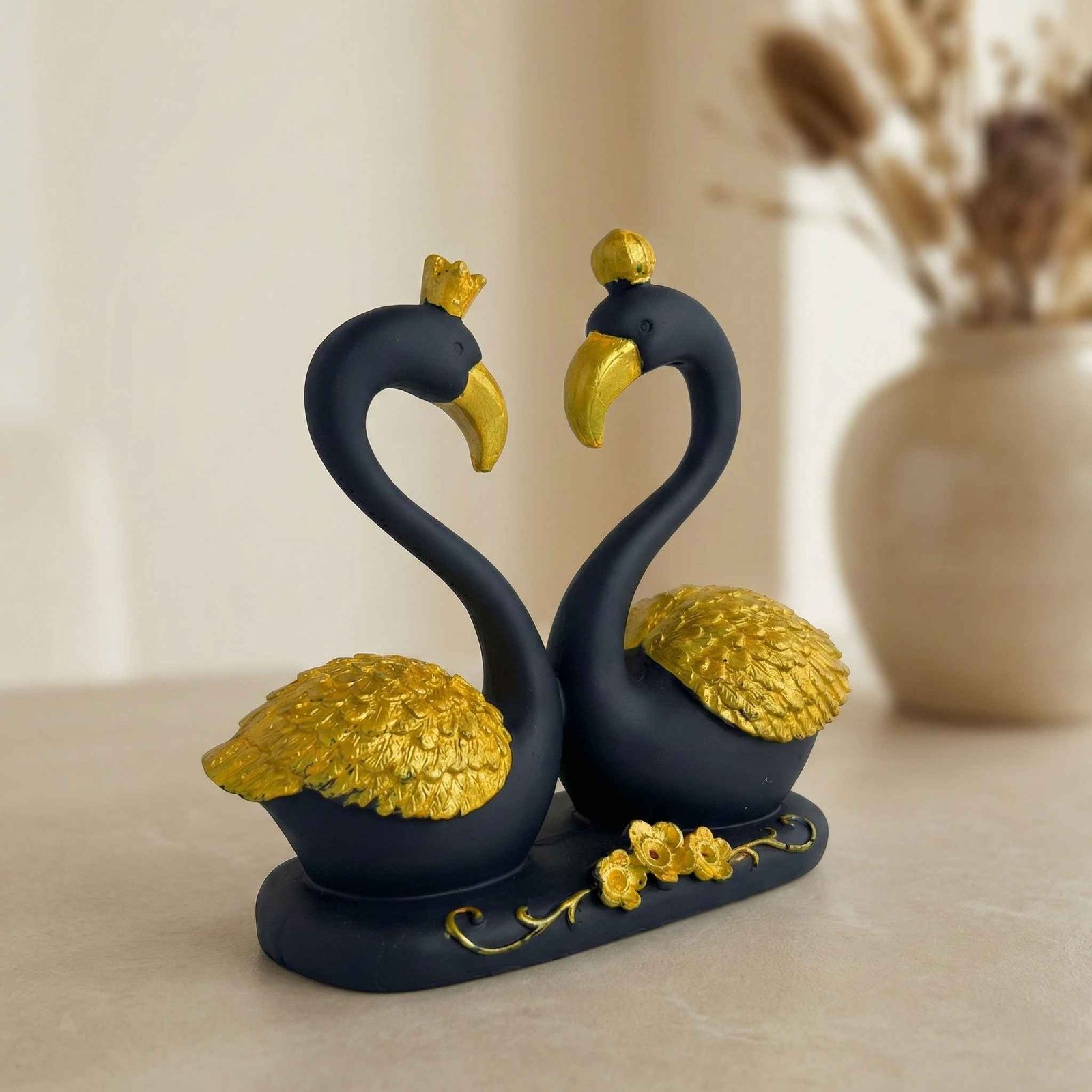 - This Statue is an exquisite and enchanting sculpture that captures the elegance and grace of two black swans, gracefully entwined in a tender and affectionate embrace.