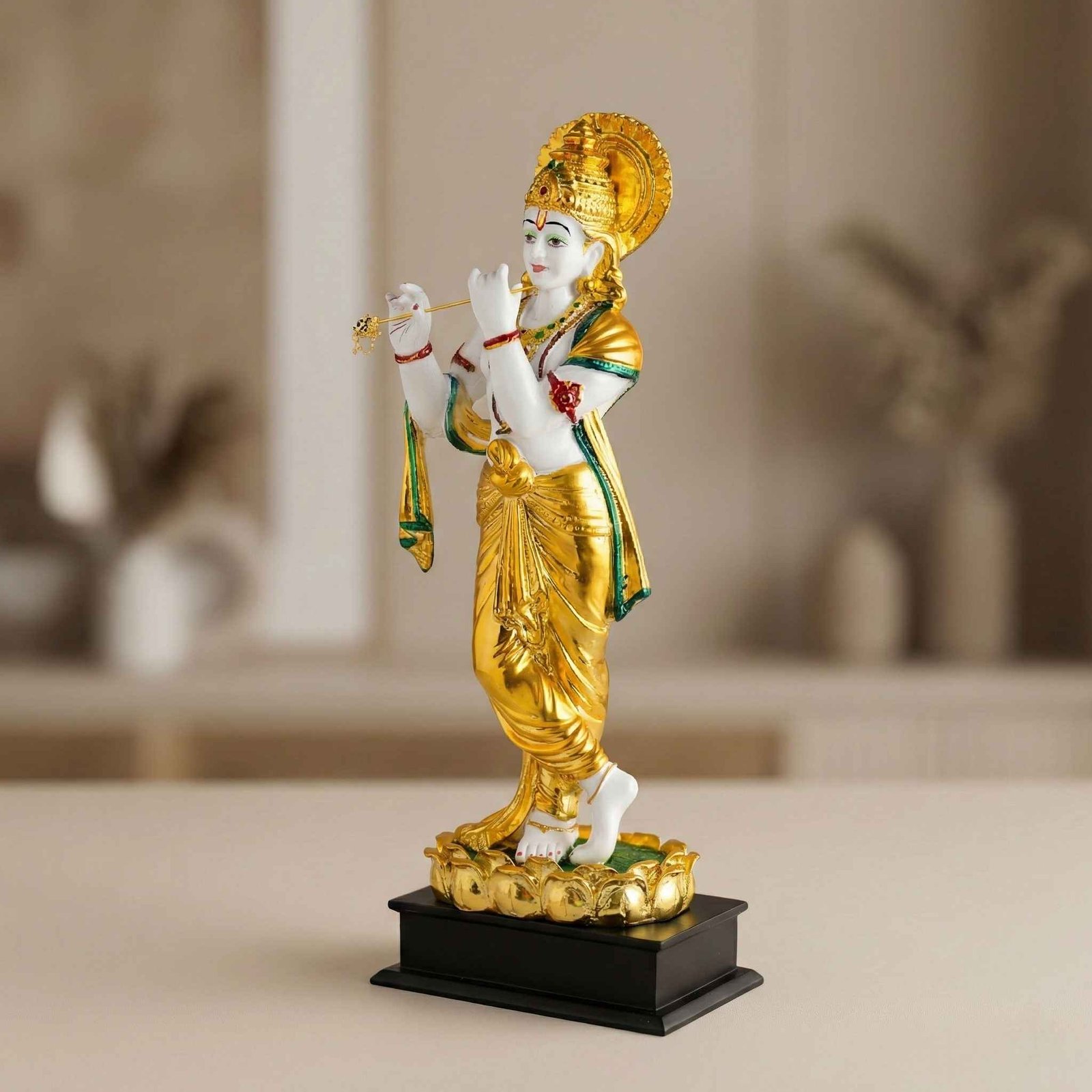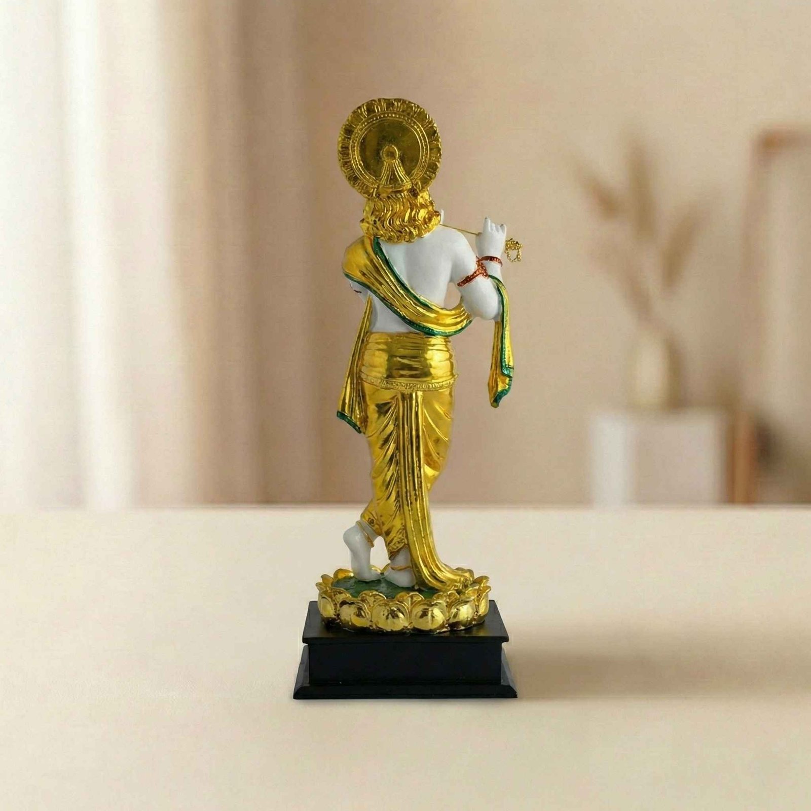 - This statue depicts Lord Krishna, a revered figure in Hindu mythology, in a captivating white and golden colour scheme.