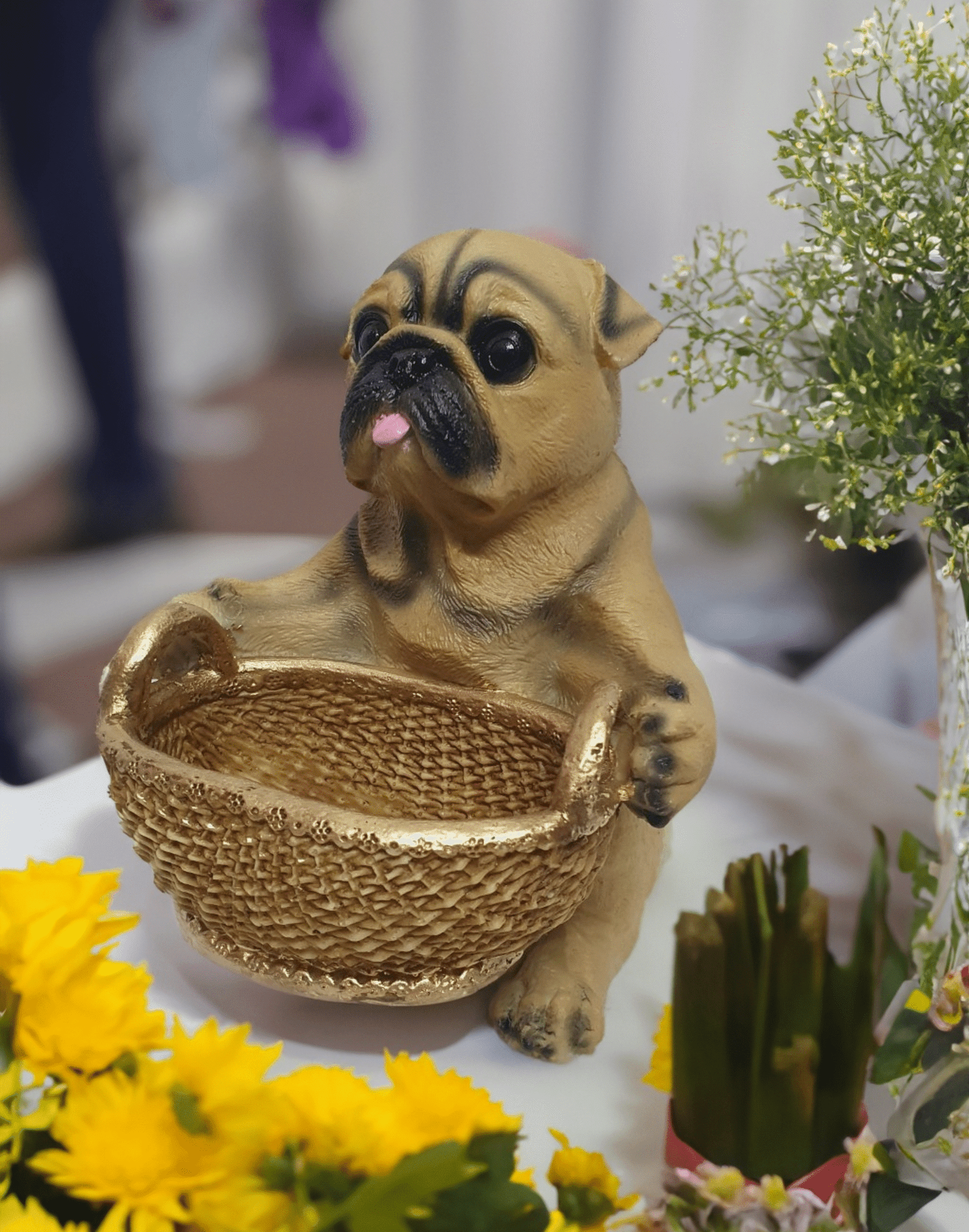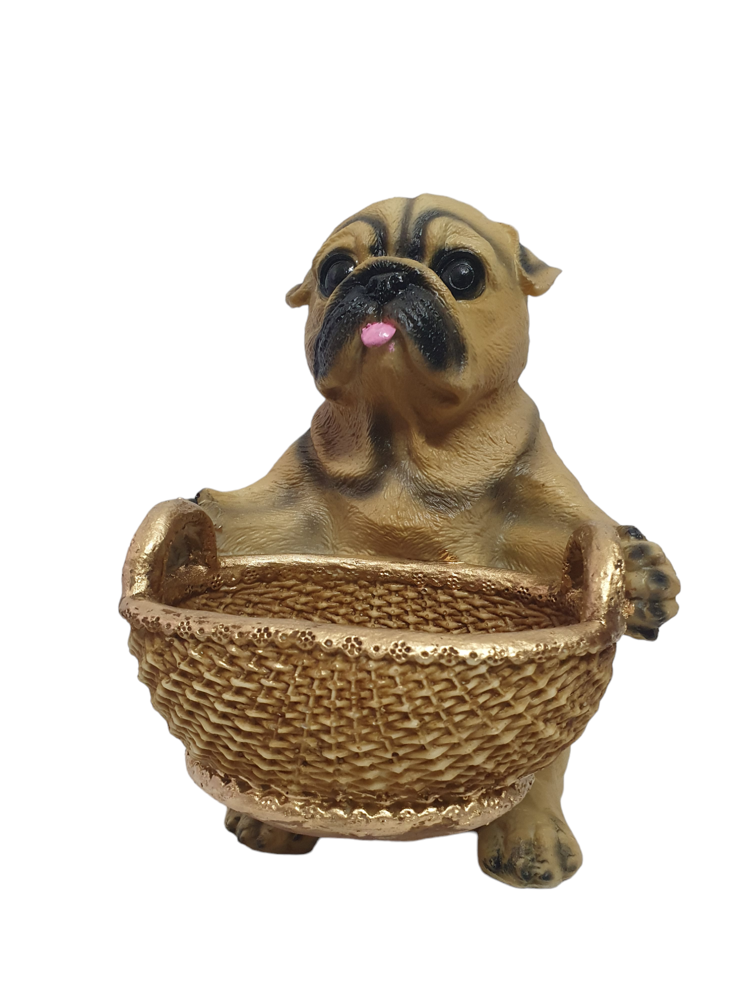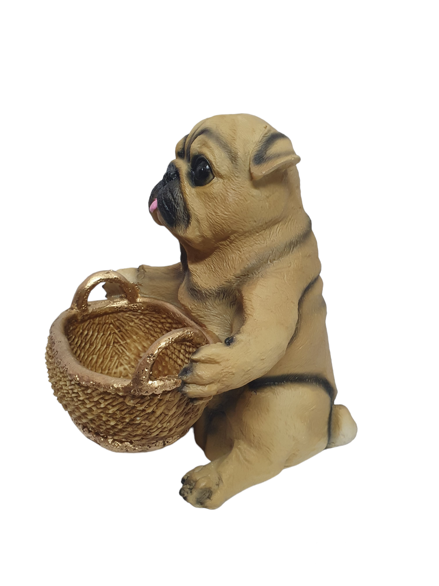 - Adorn your space with charm and whimsy with this adorable Cute Pug Dog Statue with Basket.