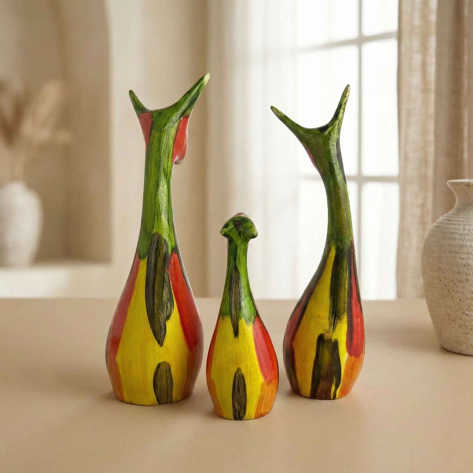 - Enhance your home decor with a captivating Multi-Colour Cat Family Statue.