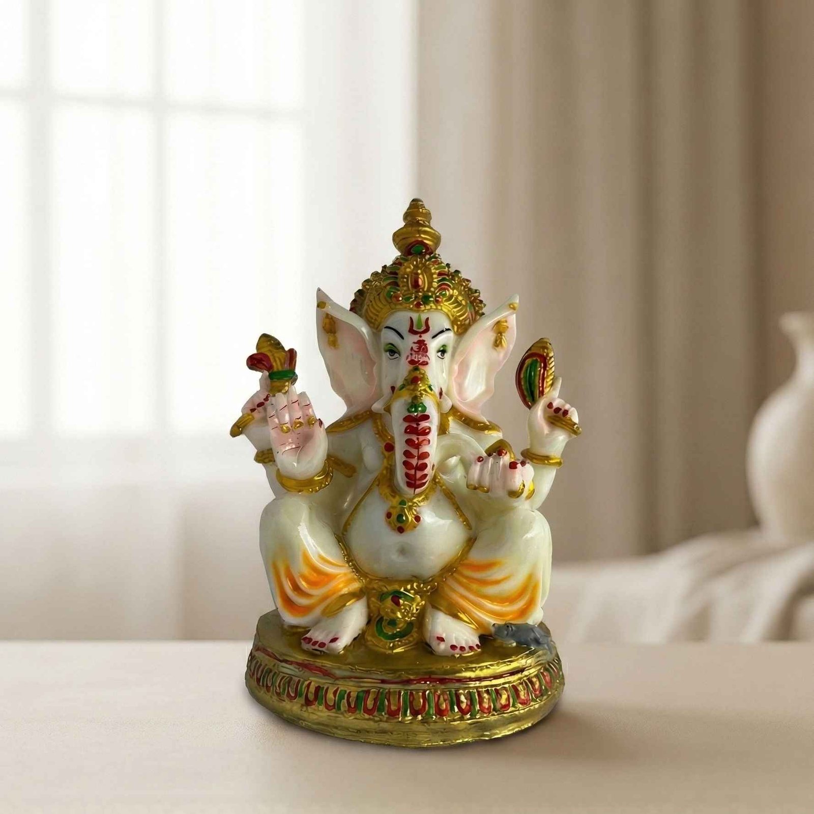 • The Golden Ganesha Statue in a seated posture is a symbol of auspiciousness and prosperity.